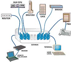 SERIMUX eliminates the need to connect each device to a dumb terminal or PC. |