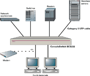With ConsoleSwitch, the administrator may access network appliances such as switches, hubs and routers, even when the LAN is down.